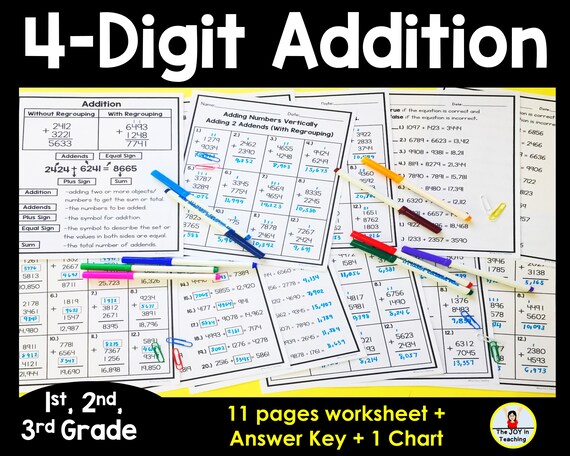 4 Digit Addition Worksheets | Free and Printable Resources 4 Digit Addition Worksheets. Hey Teachers! Here you have a new math resource. This set contains 6 different worksheets with 4‑digit additions. Each worksheet has a total of 15 different arithmetic operations. They are perfect to practice addition with kids of different age ranges. In case you want to save ink ...
